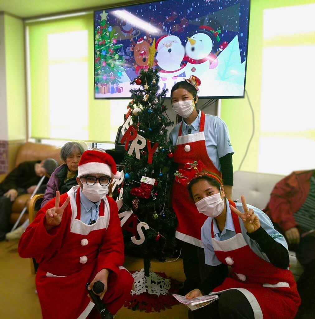 サンタクロースに扮した留学生の皆さんと、楽しいゲームで盛り上がりました😊!