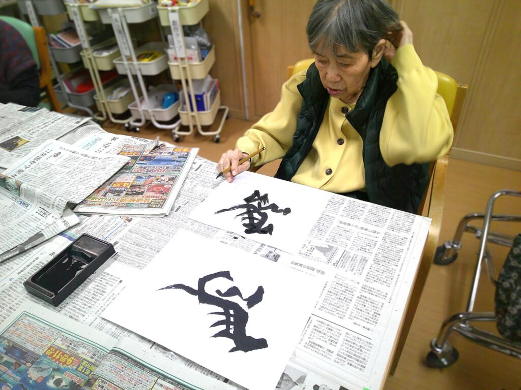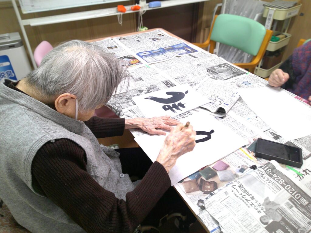 今年の干支にちなみ、お手本を見ながら「午」の字や絵に挑戦することに✨