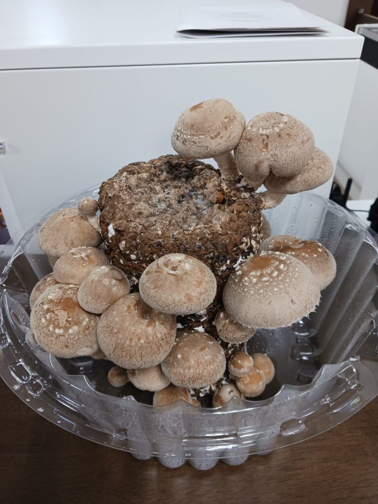 先日、室内で育てられる椎茸栽培セットを設置したところ、1週間でケースにいっぱいの椎茸が育ち、急遽椎茸の収穫と食べる会を決行しました😋