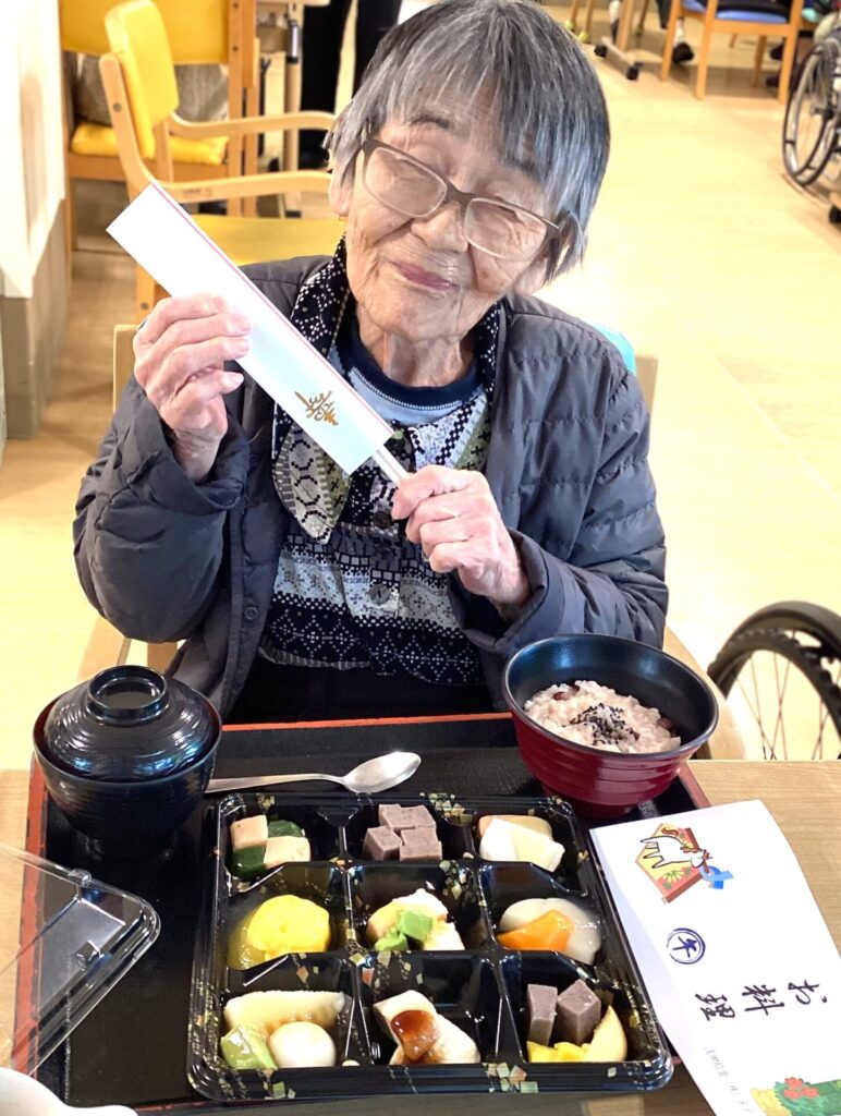 青蓮荘 お正月ブログ, 青蓮荘 【青蓮荘】 青蓮荘ではお正月に、おせち料理の提供があり、皆様の笑顔と共に輝かしい新年を迎えることができました😊✨ 大阪府門真市 有料老人ホーム青蓮荘 ハートケアグループのHPはこちらから ハートケアグループの求人はこちらから