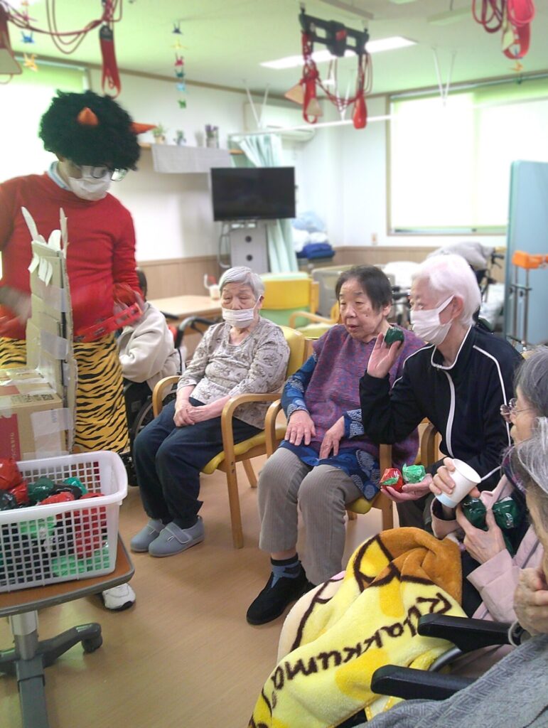 ケアホーム加美 節分ケアホーム加美, ブログ 【ケアホーム加美】 職員が扮する鬼や、的を目掛けて「鬼は外!福は内!」と、ご入居者の皆さんが、豆に見立てたボールを元気よく投げておられました😊 力強い掛け声とともに、たくさんの福を呼び込みました✨ 大阪市平野区 有料老人ホーム ケアホーム加美 ハートケアグループのホームページはこちらから ハートケアグループ 求人