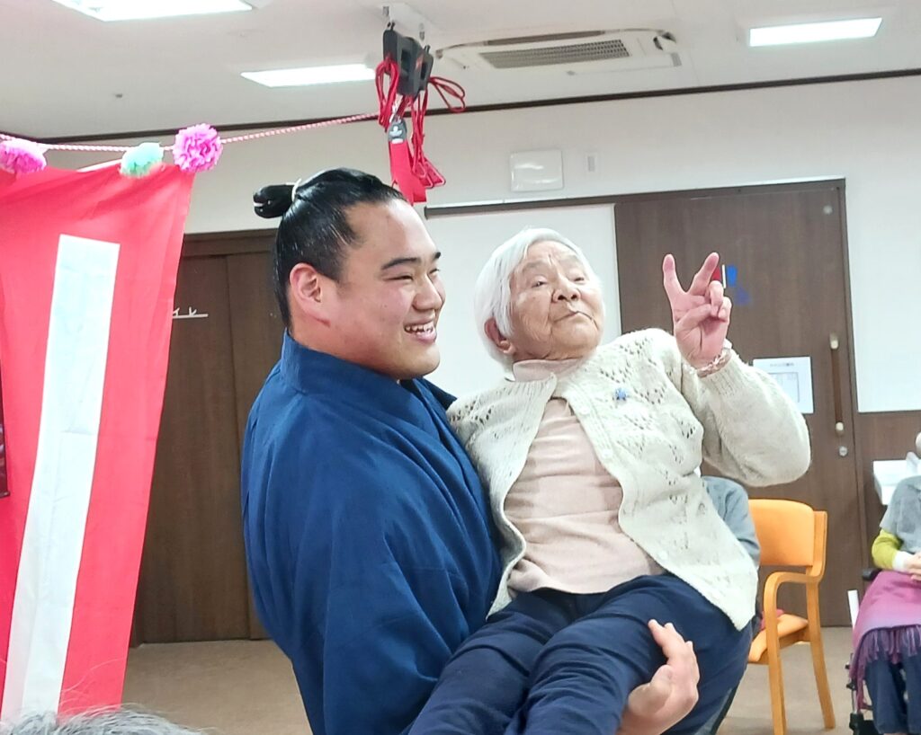 3月25日、大相撲大阪場所を終えたばかりの藤島部屋から、常陸號関、富士の山関のお二人が慰問に来てくださいました😊✨